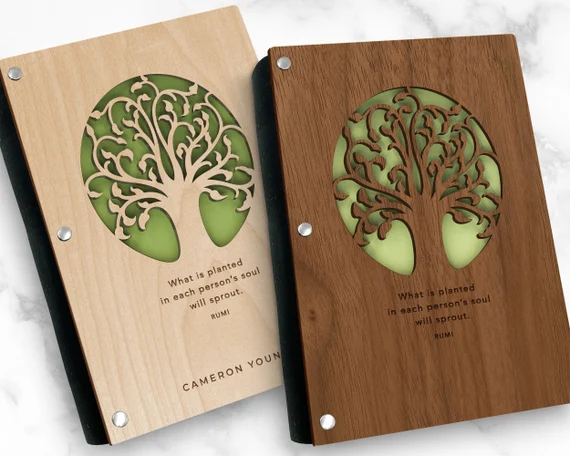 Offer notebooks with engraved wooden or leather covers. Customers love the combination of functionality and thoughtful personalization.