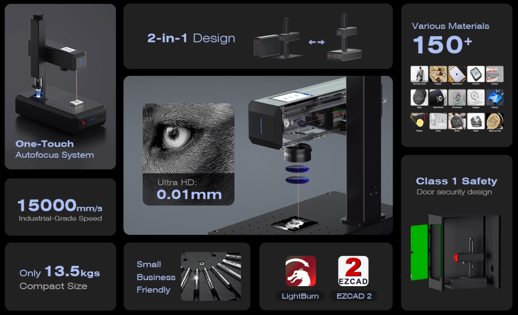 From marking tools and creating custom jewelry to engraving plastics or anodized metals, this machine delivers across a range of materials.