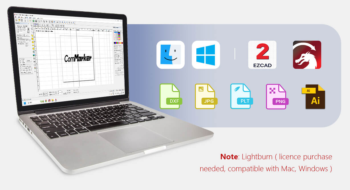 يتضمن برنامج EZCad ومتوافق مع برنامج LightBurn (غير متضمنة).