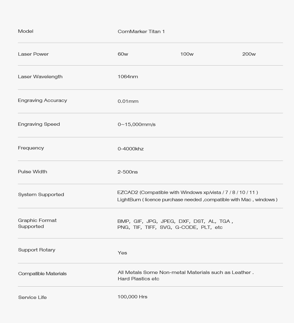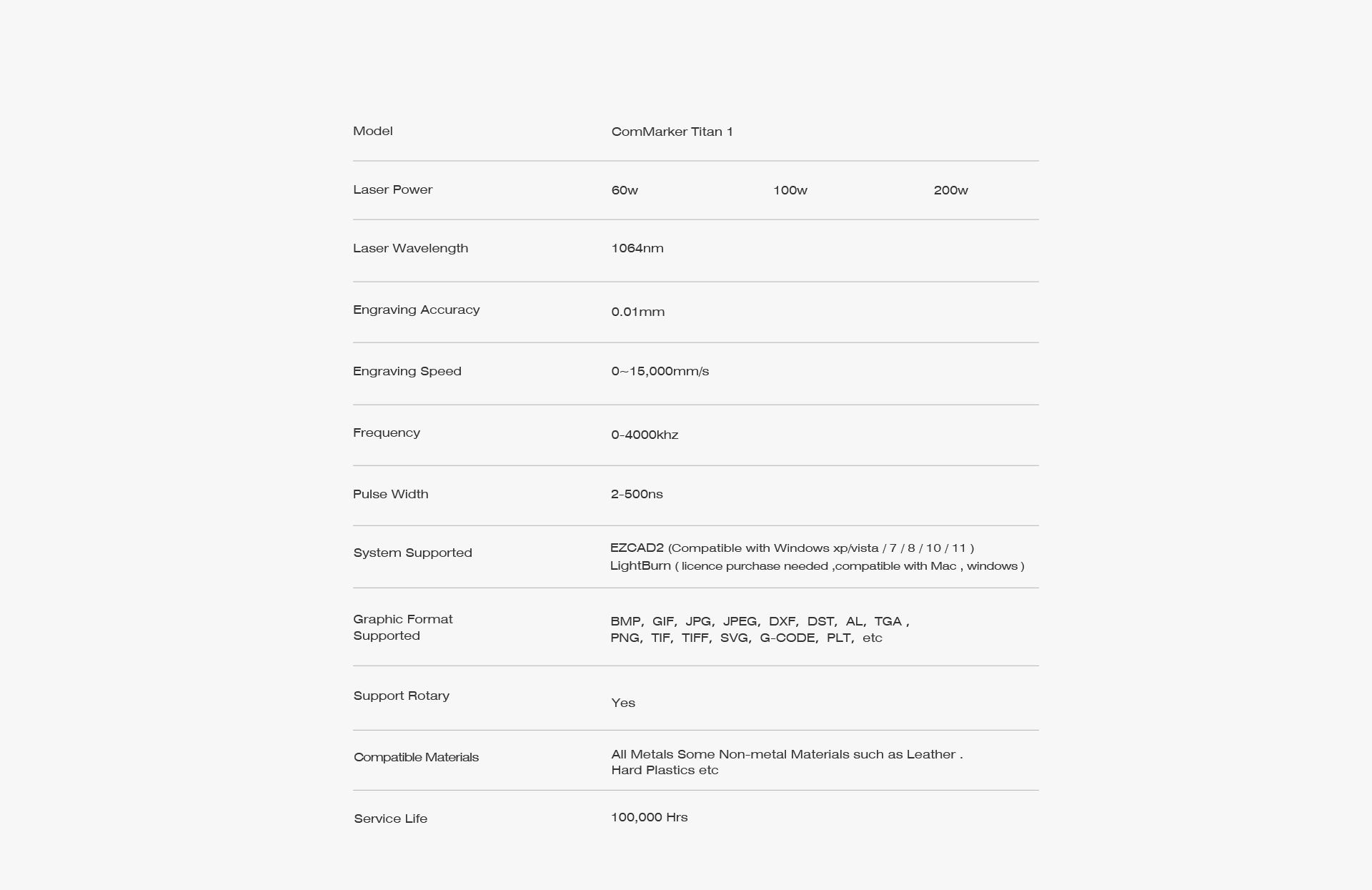 مع تردد نبض قابل للتعديل وعرض تيتان 1 تتيح الألياف وضع علامات ألوان نابضة بالحياة على الفولاذ المقاوم للصدأ والنقش عالي التباين على الألومنيوم المؤكسد