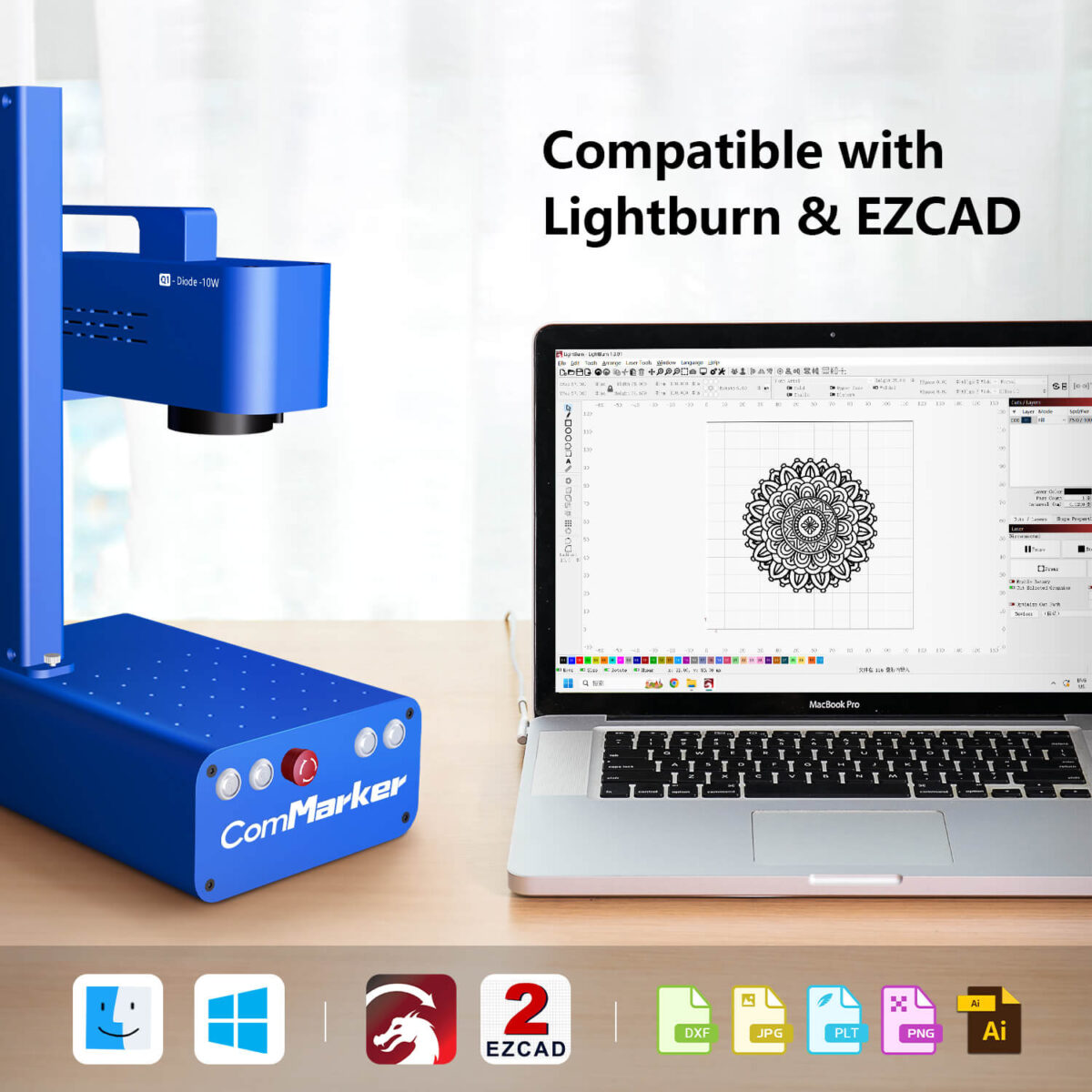 بما في ذلك LightBurn EZCAD2، عبر تنسيقات صور متعددة.