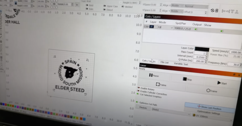 These LightBurn settings were used with the ComMarker Omni 1 láser ultravioleta: