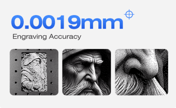 - OMNI 1: Ce modèle se démarque par un taille du point laser de 0.0019 millimètre et un 16Résolution KHD, ce qui le rend parfait pour les travaux de gravure très détaillés. Que vous créiez des microsculptures, graver des motifs complexes, ou marquage de composants électroniques fins, l'OMNI 1 garantit la plus grande précision, préserver à la fois la qualité et la valeur artistique de vos créations.