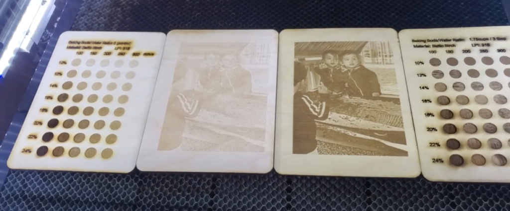 - Bois: Le bicarbonate de soude et le borax peuvent être utilisés sur le bois, mais la légère abrasivité du bicarbonate de soude aide à lisser la surface de gravure, ce qui est particulièrement utile pour les gravures plus légères. Borax, d'autre part, est meilleur pour contrôler la fumée et réduire les brûlures lors de gravures plus profondes.