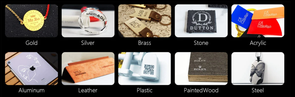 Another major advantage of fiber laser engraving machines is their ability to work with a wide range of materials, en particulier les métaux. Fiber lasers can engrave, marque, and cut almost any metal, y compris l'acier inoxydable, aluminium, cuivre, laiton, et titane. They can also handle non-metal materials like plastics, céramique, and certain types of glass.
