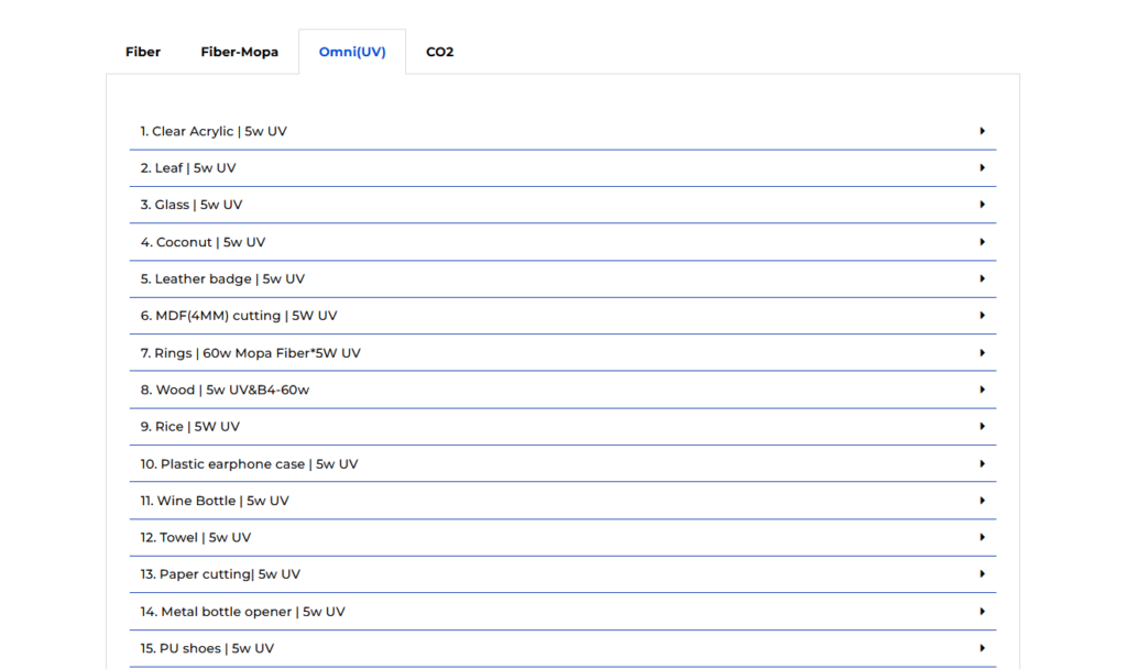 - Choose your material type (e.g., wood, acrylic, leather, etc.).