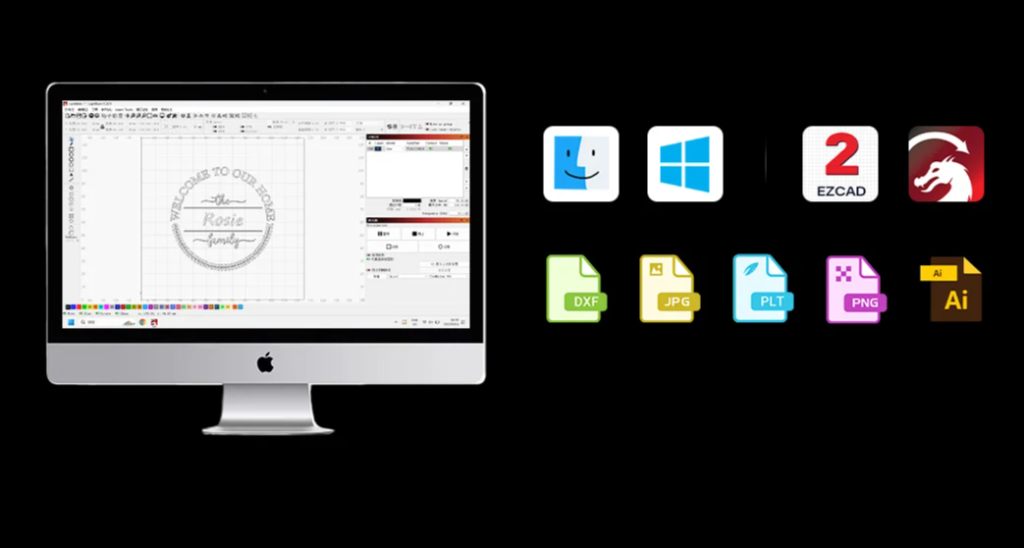 - EZCAD2: 산업 표시에 적합한 고급 제어 소프트웨어, 조각 매개 변수에 대한 정확한 제어를 제공합니다.