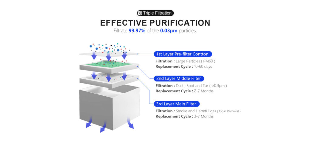 - HEPA Filter: Eliminates smaller particles and fine dust.