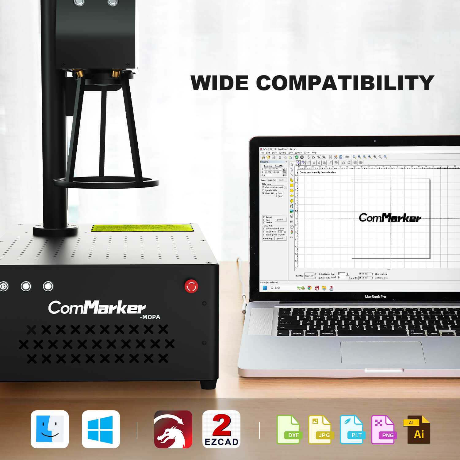 ComMarker B4 20W Mopa fiber Laser Engraver empowers you to engrave any pattern using different softwares.