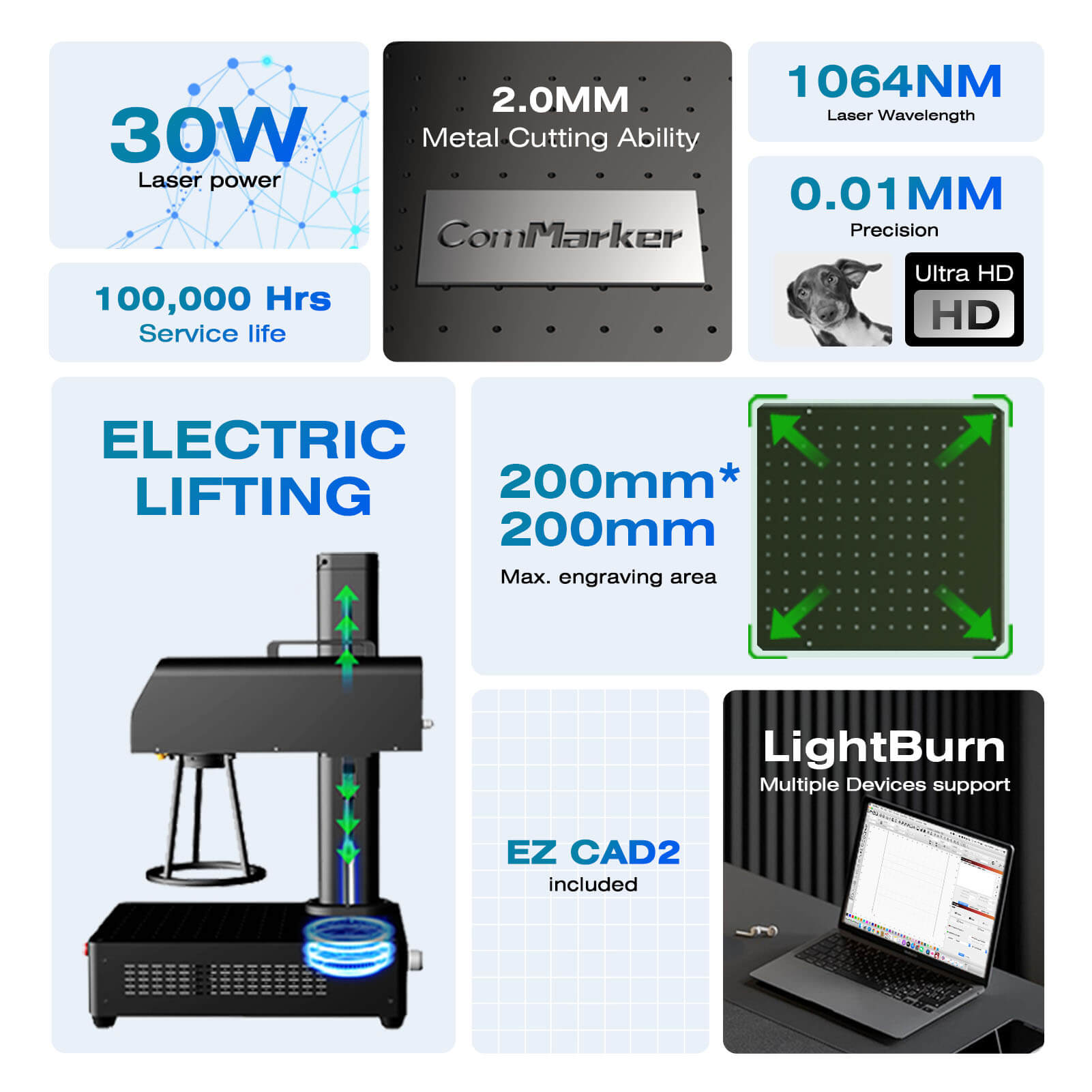 and is compatible with EZCAD and LightBurn.