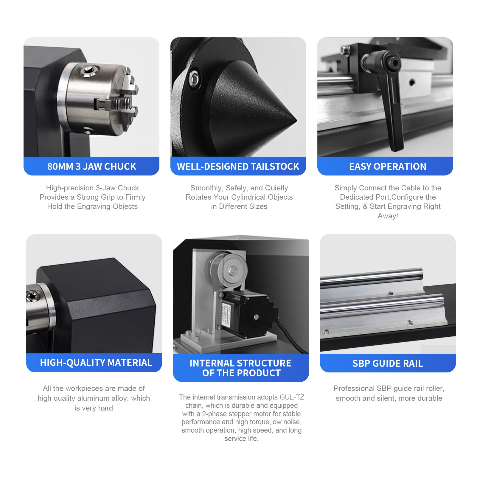 80mm 3-JAW ROTARY CHUCK 360 Marking on Cylindrical SurfacesRings. Bracelets. PensBottles. Tubes. More ComMarker D80 ComMarker’s 80 mm(3.1 inches)rotary axis