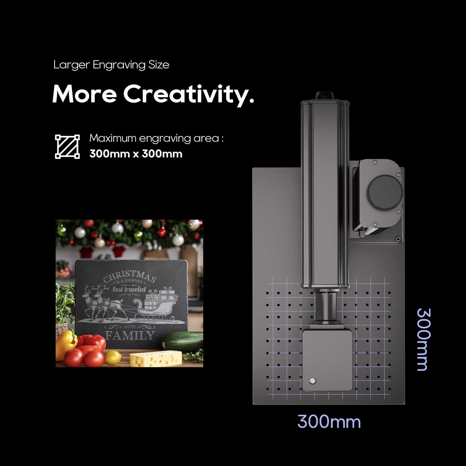 If you need to achieve a 300*300mm engraving area, 300*300mm field lens purchase additional needed.