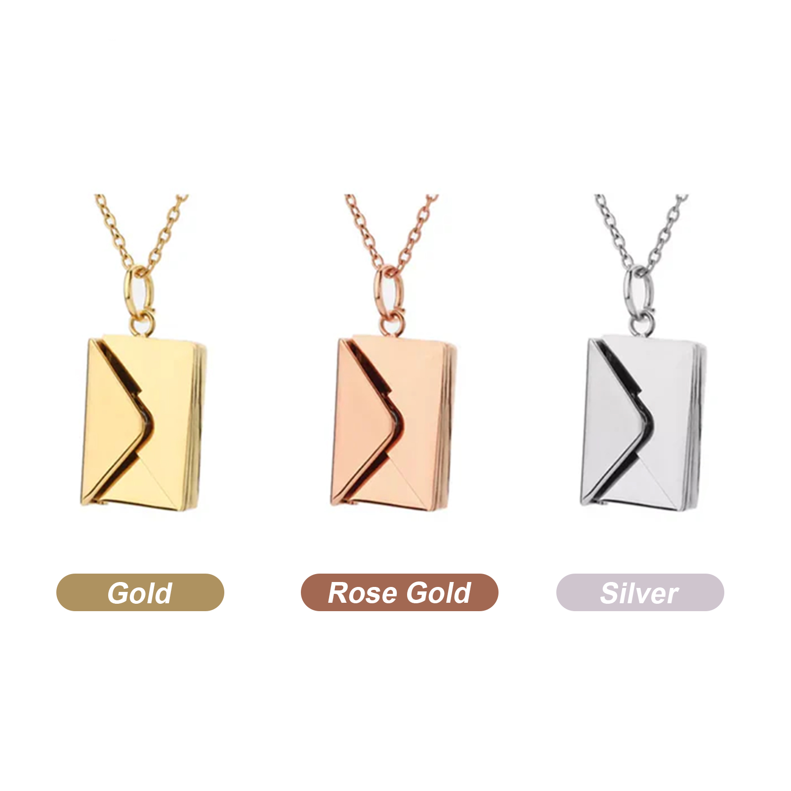 Love letter envelope necklace: Our women’s pendant necklace is designed in the shape of an envelope. with such a love letter that you can carry with you, eternal memory promises that the envelope necklace will record your love.
