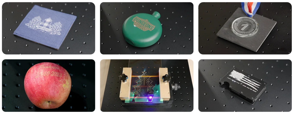 Laser engraving is often used for marking and etching designs, logotipos, códigos de barra, Códigos QR, and serial numbers on materials. The engraved marks are permanent and can’t be removed by external forces. This is commonly used for product branding, rastreabilidade, e security features.