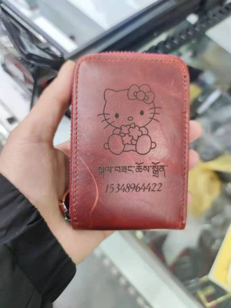 - Gravuri portofele, curele, și carcase de telefon cu monograme sau logo -uri complexe.