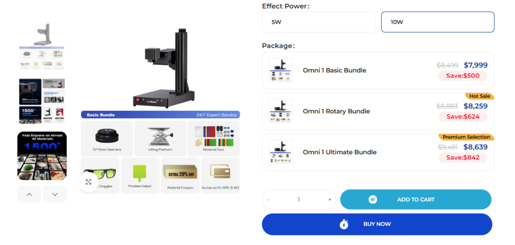 Un laser UV de 5W este de obicei suficient pentru detaliat, gravare fină. Puterea sa mai mică minimizează efectele termice, Reducerea riscului de topire sau distorsionare a suprafețelor de delicat de bijuterii. - Eficiența energetică: