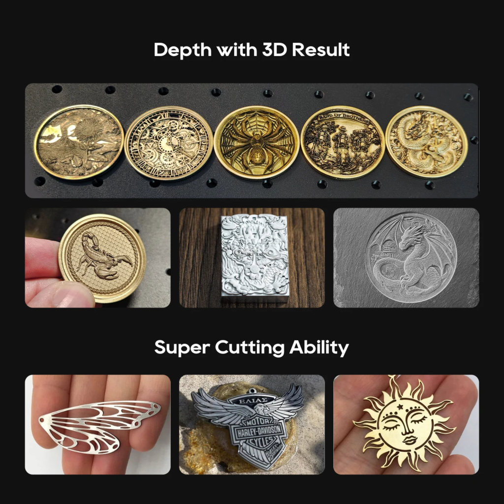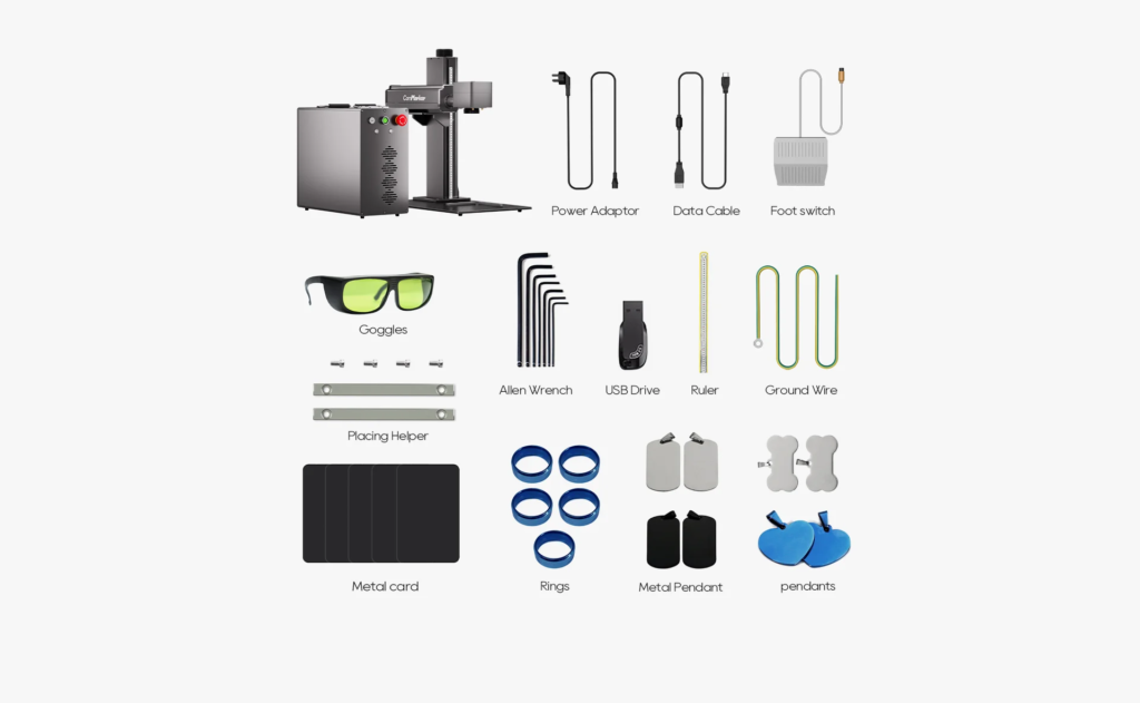 - 20W: Ideal for fine engraving on metals, plastics, and non-ferrous materials.