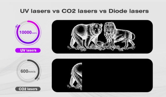 Next Generation Laser to Unlock All Materials. ZeroBurn™ Engraving Technology World’s 1st 16K HD Laser Engraver 10,000mm/s SpeedMax™ Engraving System Unlock all material with UV Laser ColdFront™ Thermal Technology Electric Lifting with 2 Optional Lenses Compatible with EZCAD and LightBurn 360°Rotary Engraving System