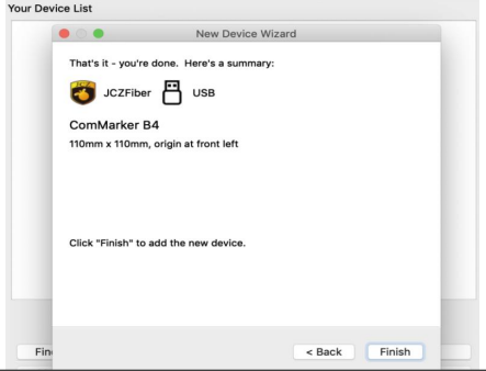 11. 从“设备设置”按钮转到“基本设置”, 点击“加载COR文件”, 选择“EZCAD for ComMarker B4”—>“110毫米”, 选择文件“JCZ11.cor”, 点击“确定”