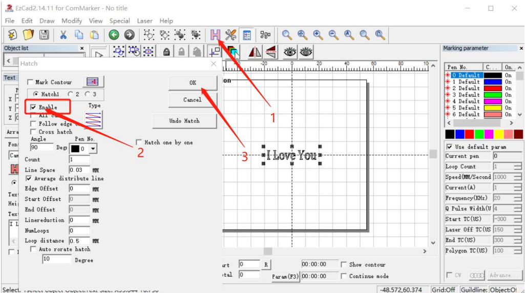 笔记: 以下参数是20W机器雕刻不锈钢的建议. 根据不同机器或材料的需要调整参数.