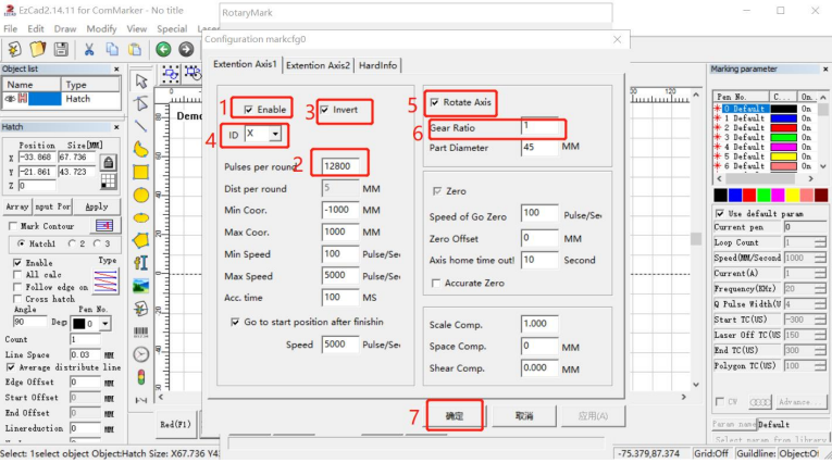 13.更改频率“Min 1”的设置, “最多 4000”. 打开“振镜2”. 打开“启用 Q-PulseWidth 设置”按钮 (确保光纤类型为“IPG _YLP”或“JPT”)